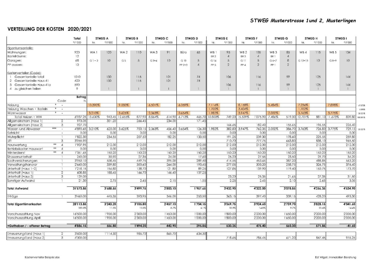 Kostenverteiler einer Eigentümergemeinschaft